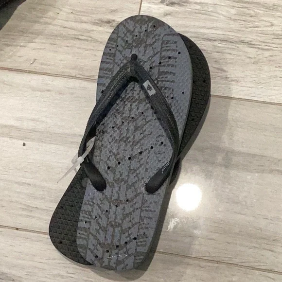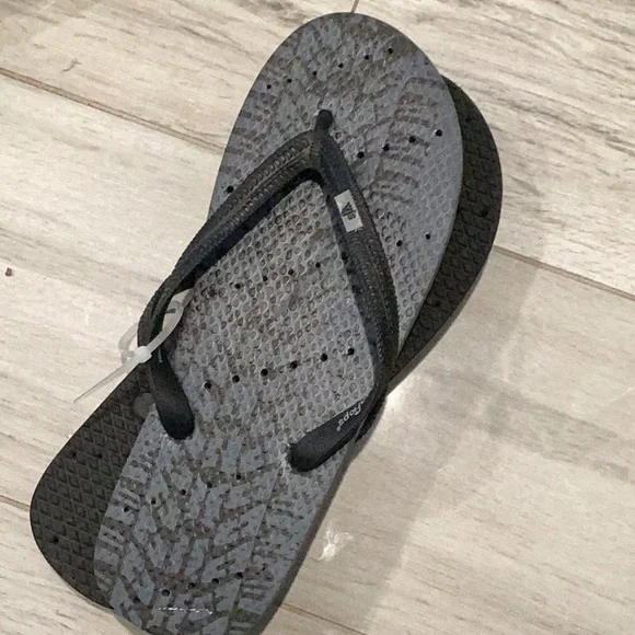 Comfortable gray flip flops with black straps. Perfect for casual wear.