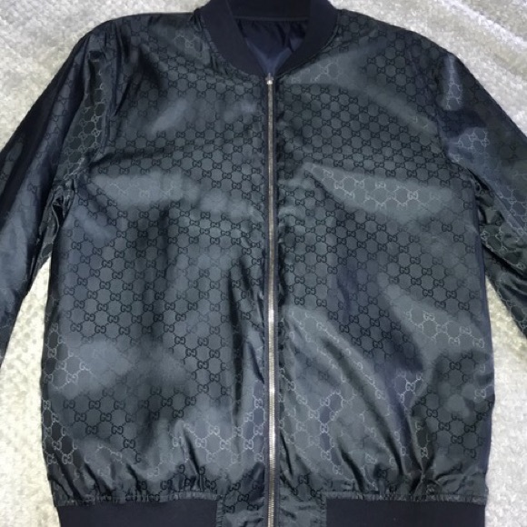 ´s lightweight nylon padded bomber jacket is a great investment for this season and beyond. It´s fully reversible, with one side featuring ´s GG jacquard print, the other plain navy nylon. Therefore offering two looks in one. A close-fitting neckline, sleek zip fastening and navy ribbed-jersey trims ensure a sleek and sporty finish.
