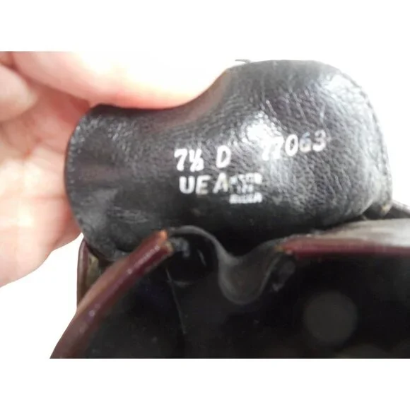 Pair of pre-owned Florsheim Loafers Moc Toe Round toe slip onsno indication of what material is, feels like leather but no guaranteeSize 7.5 D - has a stretchy piece under the tongue for fit - see size photosome wear heel and creasing of upper from usegreat shoes with alot of life left