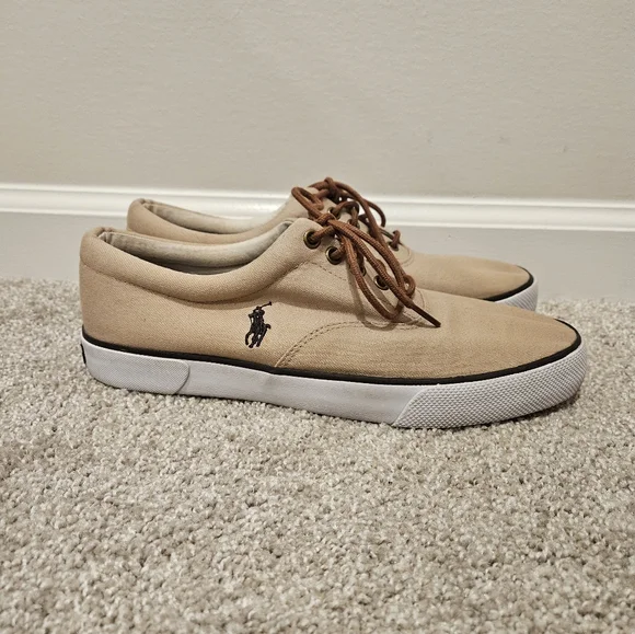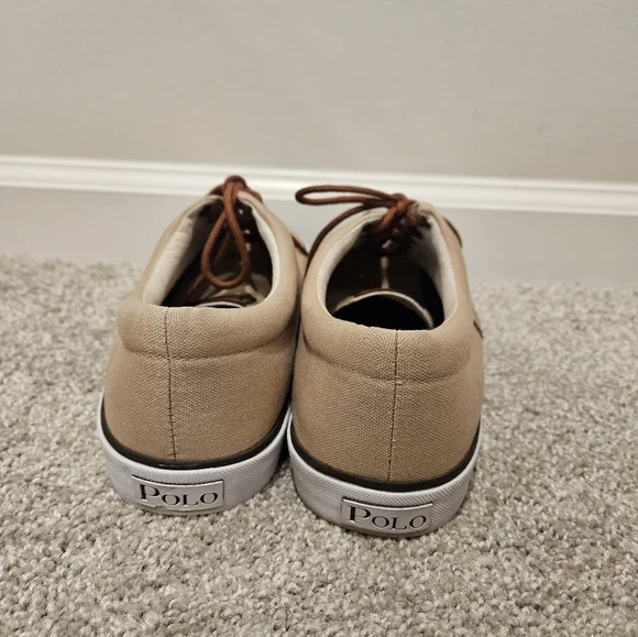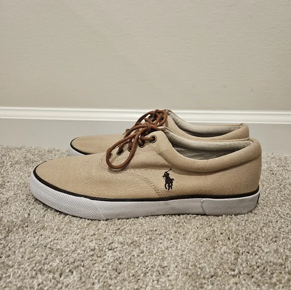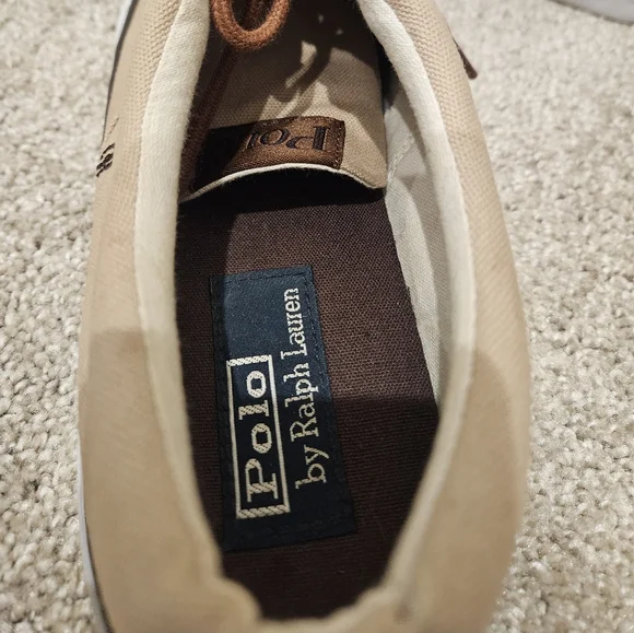 Polo By Ralph Lauren Men´s Tan Canvas Sneakers with Brown Accents, Size 10