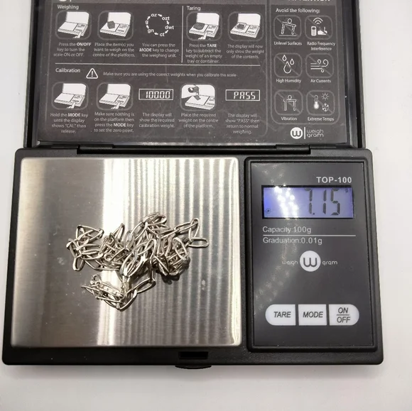Handmade sterling silver paperclip link chain. 21.5 inches long. Weighs 7.15 grams. Genuine sterling silver guaranteed .925 purity. Handmade one by one in Taxco Guerrero, Mexico. Don´t get fooled into buying cheap generic chains mass produced by the hundreds of thousands made in China or Italy. There´s a reason why they don´t list the weight of their products on their listings! This sterling paperclip link chain was handmade one by one by skilled artisans in Taxco Mexico. This place is known worldwide for producing some of the highest quality sterling jewelry you can find! They take pride in their work and the proof is in the product. Try it on once and you´ll never find yourself buying generic Chinese or Italian sterling ever again. Carefully packaged and shipped the same day!14