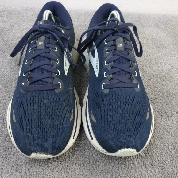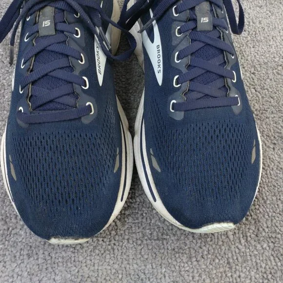 Used. Toe box has wear. Tread has wear. See pics.Pre owned shoes with normal signs of use. See each photoNo original box .Photos are of the actual pair of shoes you will receive from us.Brooks Ghost 15 Mens Size 10.5 Running Shoes Navy Blue Mesh Sneakers Low Top**Check out our store for more shoes like this! Bundle and Save on Shipping!We ship within one business day and always shipped with care and professionalism.