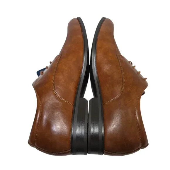 THE SHOES ARE BRAND NEW WITH TAGS.US Shoe Size: 11Shoe Width: MediumColor: BrownWith a versatile, traditional style, these men’s dress shoes are designed with a polished faux leather upper paired with handcrafted accents to create a look that’s sleek and timeless. These men’s Oxford shoes have a cushioned footbed combined with flexibility, giving your feet long-lasting comfort and support.Shoe Closure: Lace-up closureMaterial:Polyurethane upper;Thermoplastic Rubber outsoleFeatures:Faux leather design;comfort footbed (Memory Foam)