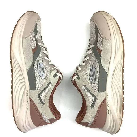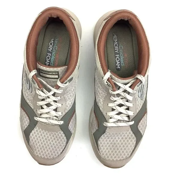 Skechers Skyline Alphaborne Brown Tan Green Sneaker Shoes Men´s 9 Dual Lite