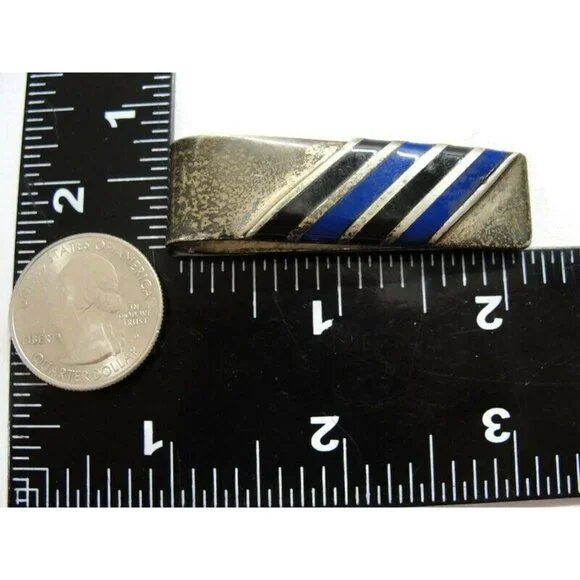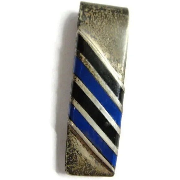 Vintage Mexico 925 Taxco TV-56 Money Clip Onyx Lapis Nice