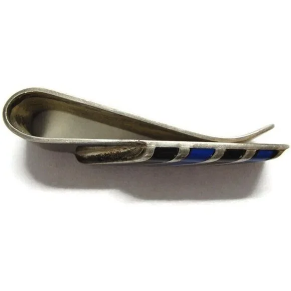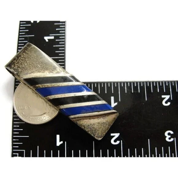 This Vintage Mexico 925 Taxco TV-56 Money Clip is an elegant, slim fold design featuring Onyx Lapis. Made from sterling silver by the renowned brand Taxco.• Sterling Silver...