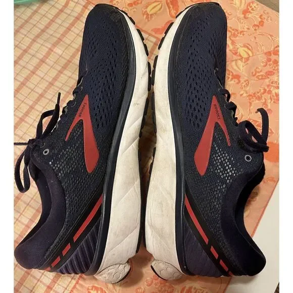 Brooks Mens Ghost 11 1102881D428 Blue Red Running Shoes Sneakers Size 12.5 D.Some road dirt coloring on the soles and some pilling on ankle area (left esp.), but overall in good...