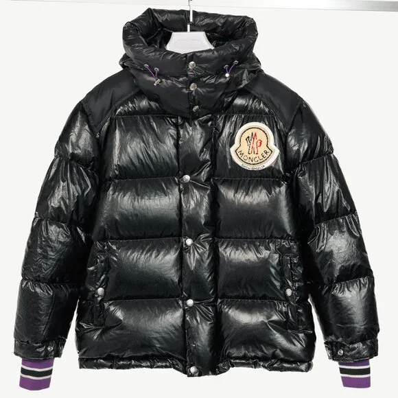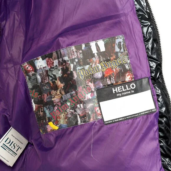 Moncler 8 Palm Angels Tim Black Shiny Logo-Patch Puffer