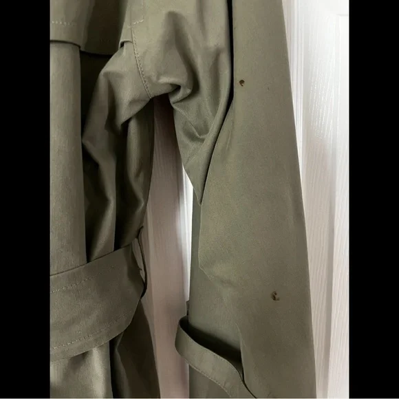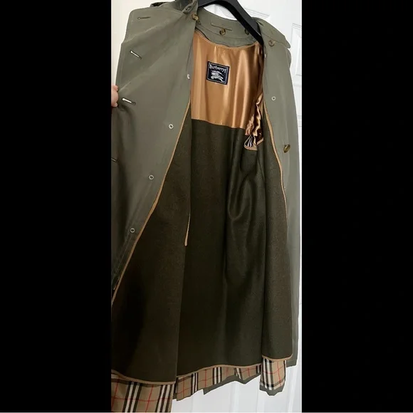 Authentic Burberry Trench Coat;Detachable Lining;Classic & Timeless;Waterproof Exterior;Wool Interior;Very Warm with Lining;Couple Storage Stains (will probably come out with next wash - see last 2 photos) - Overall Very Good Pre-Owned Condition - Comes from pet-free smoke-free environment