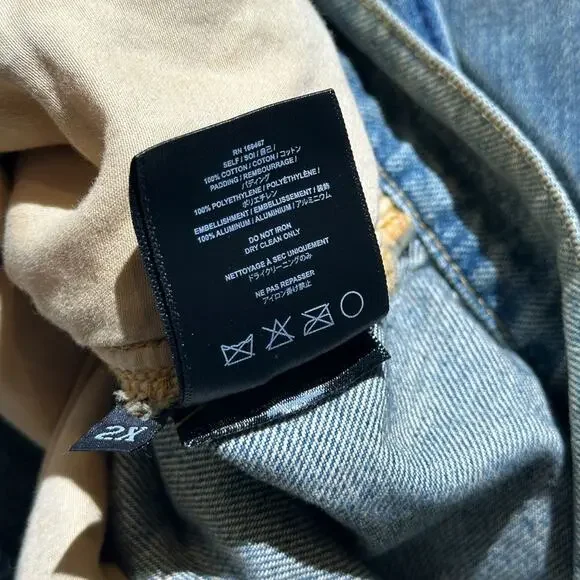 Padded moto style design throughout. The perfect color washed denim. Shoulders: 22”Pits: 26”Length: 26”Sleeve: 25”DON’T OFFER IF YOU CANNOT PAY SAME DAYTHESE ARE PICTURES OF THE ACTUAL ITEM.NO REFUNDS , BUY WITH CONFIDENCE, ALL ITEMS AUTHENTIC(check feedback)WE ARE NOT RESPONSIBLE FOR PACKAGES AFTER IT IS HANDED TO THE CARRIER.