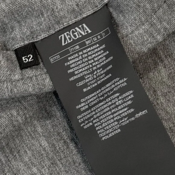 Stand collarTwo-way zipper placketSide 1: slant zipper side pocketsSide 2: slant snap button side pocketsDrawstring adjustable waistWhite, greyMade in EuropeSide 1: 100% polyesterSide 2: 55% cashmere, 31% cotton, 14% silkShows wear to the hardware.