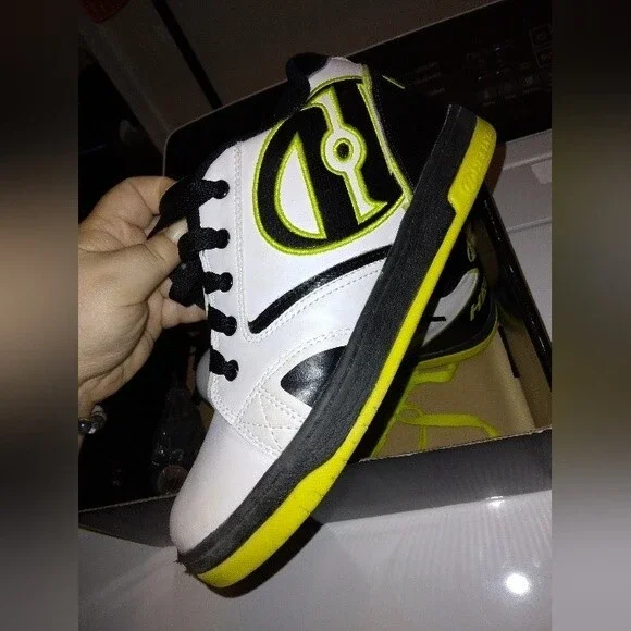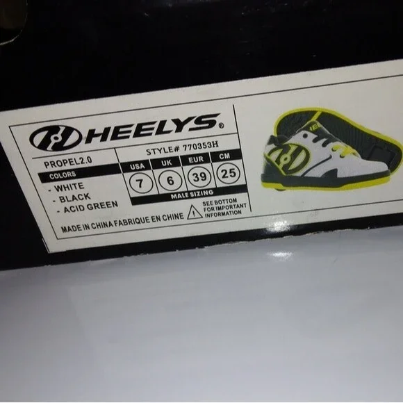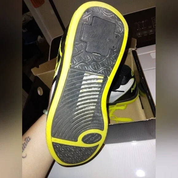 Heely´s Propel 2.0 green mens size 7some piling/wear inside shoe but good shape otherwise, has wheels in box and the tool for changing them over from regular shoes to heelys