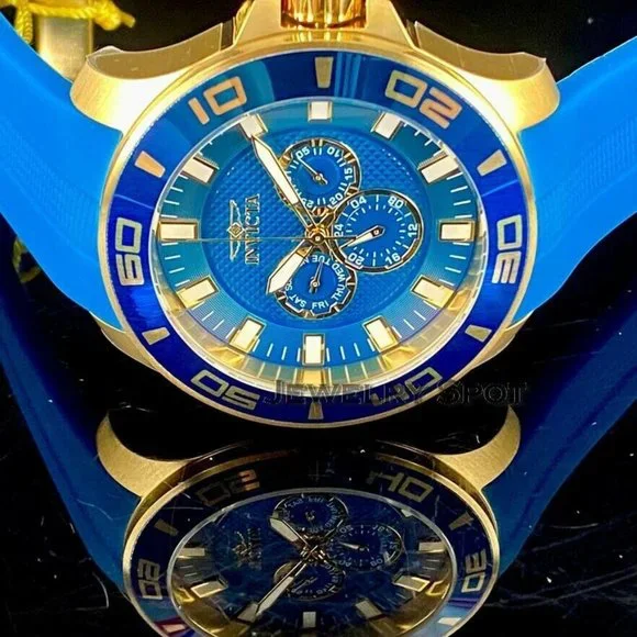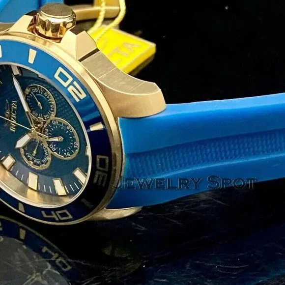 NEW Invicta Pro Diver 50MM Blue Dial Quartz Chronograph Strap Watch