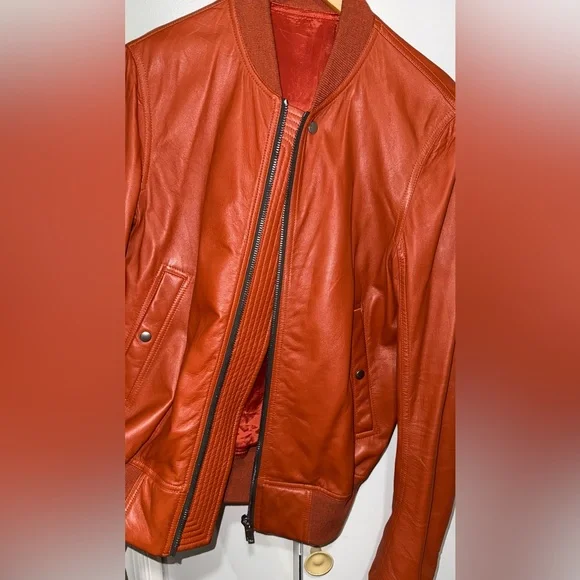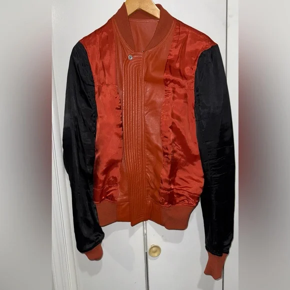 Rick Owens Reversible Orange leather/ two tone bomber jacket