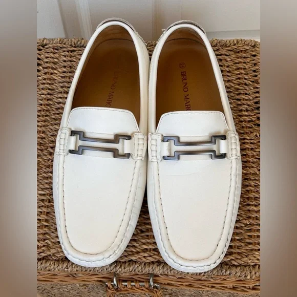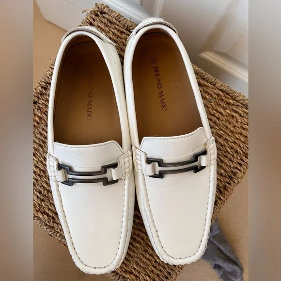 Bruno Marc Men’s Horsebit Moccasin Loafer White 9.5‎