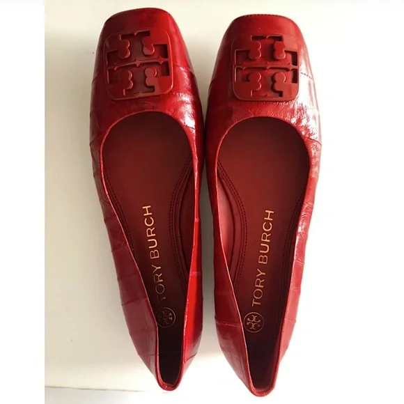 Tory Burch WIDE Croc Embossed Georgia Ballet Flat. Original Price:$298Georgia Square Toe Ballet Flat (Women) Tory Burch Size infoTrue to size. Details & careAn enameled stacked-T...