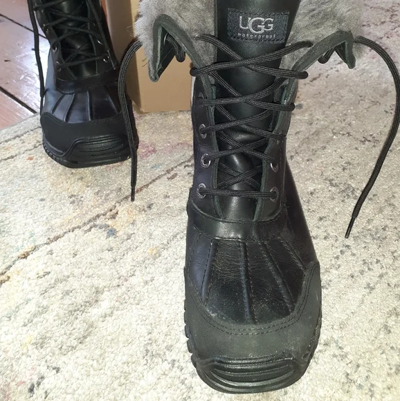 look fabulous in the powder in these perfect condition UGG boots- worn once. includes box. very warm, very comfortable, very sturdy. wool lined, can fold tops over to show.
