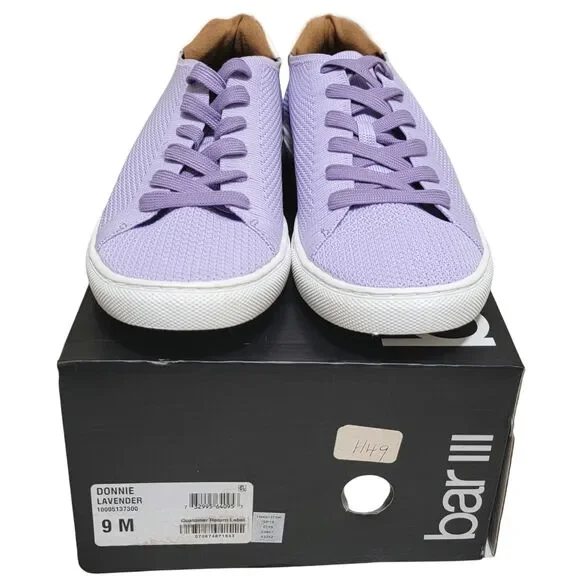 Bar III Men Donnie Low Top Lace Up Sneakers Size US 9M Lavender Purple KnitNew with boxA mesh upper adds lightweight, breathable style to these sleek low-top sneakers with a classic lace-up closure from Bar III.Lace-up closure with metal eyeletsManmade upper; rubber solePlain toe