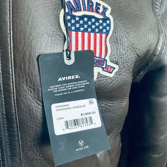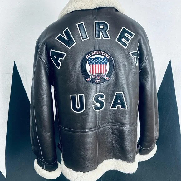 Avirex USA Icon Chocolate Brown Leather Bomber Jacket with Sherpa Lining - NEW!
