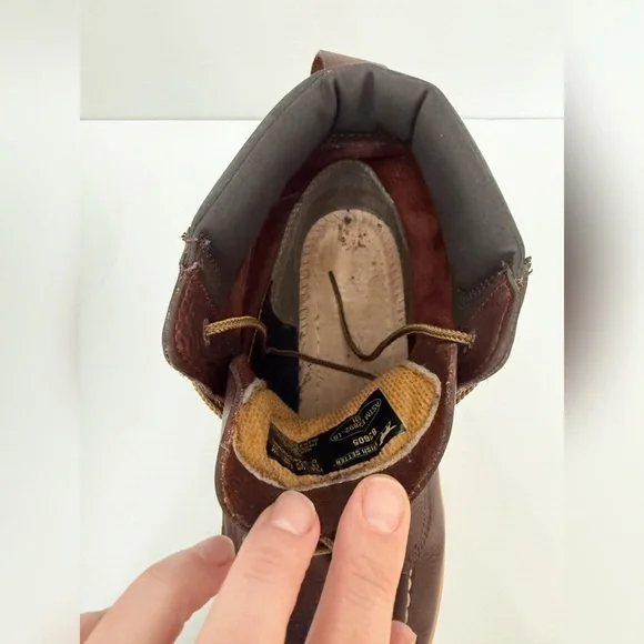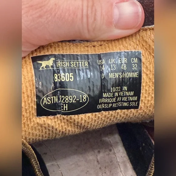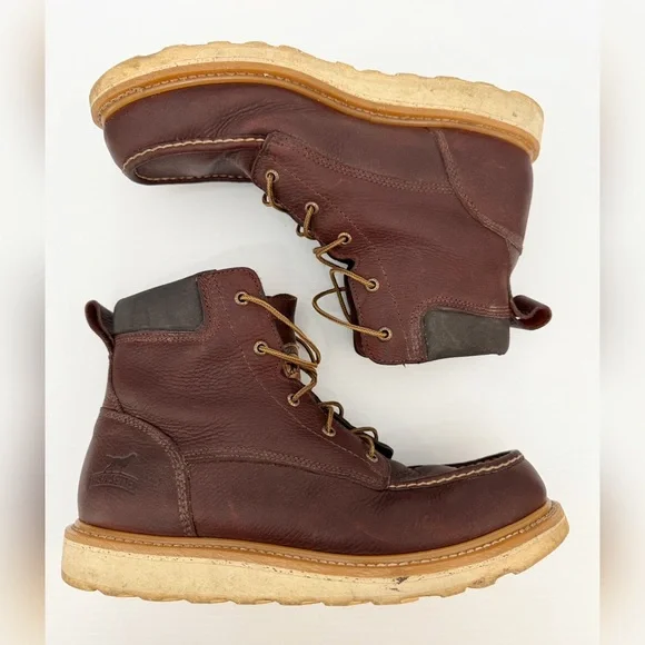 Irish Setter Ashby Men´s Brown Leather BootsSize: 14Color: BrownNo InsolesGreat Pre-owned Condition, some light cosmetic wearSee Photos for ConditionThe Ashby is one of the best 6-inch work boots because of its overall versatility, comfort, and durability. This leather soft toe boot is packed with everything you need and nothing you don´t. The comfortable sole is made from long-lasting, heat-resistant material to keep you safe and secure in any environment. The upper is leather for a premium look and dependable toughness. Once you get these on your feet, you´ll quickly realize why so many people choose the Ashby as their go-to work boot.