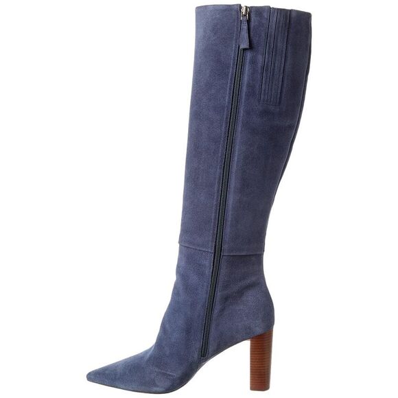 About the brand: Simple, feminine, & flirty.Please note: Size selections are European. For US conversions, please reference size chart.Elisa 85 Suede Knee-High Boot in blue suede and silver-tone hardware with elastic side panelInner side zip-up closureLightly padded leather insoleSmooth leather sole3.5in heel17in shaft15in boot circumferencePlease note: All measurements are approximate and were taken from a size 37; slight variations may occur.Our products are 100% genuine. In some cases we purchase merchandise from trusted independent suppliers and not directly from the brand owner. In all cases we stand by the authenticity of every product sold on our site.