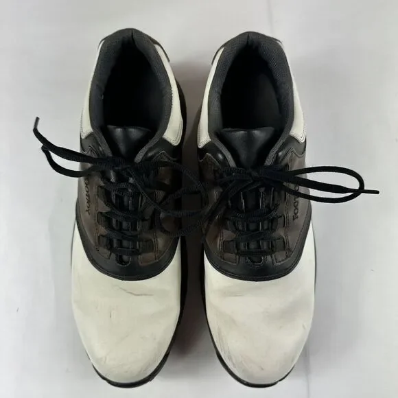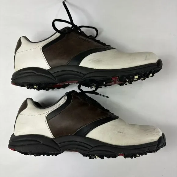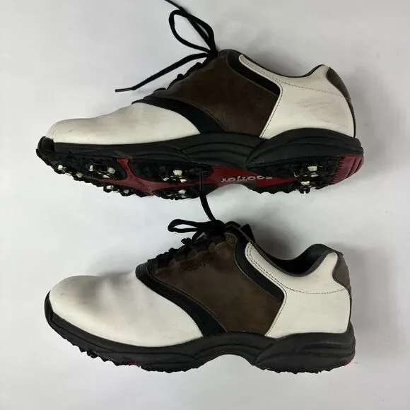 FJ Footjoy Golf Shoes‎ Mens 11 45516 White Brown Leather Loafers Sneakers Spikes