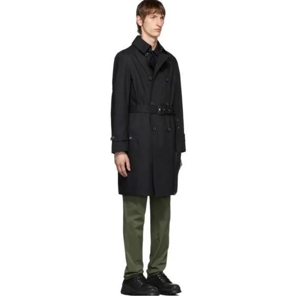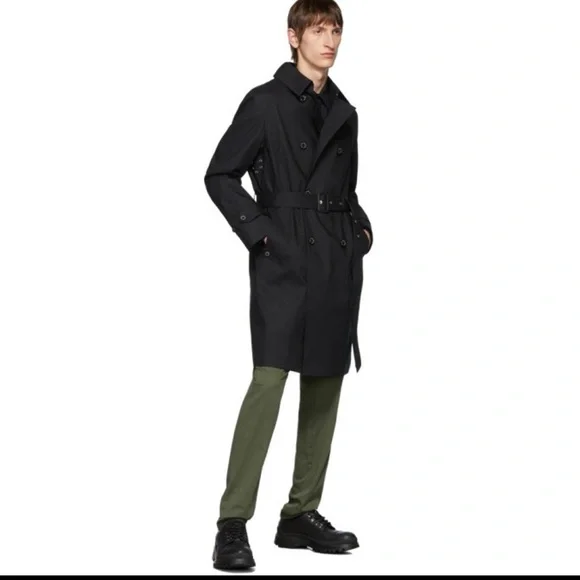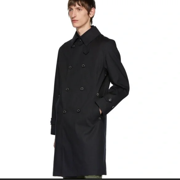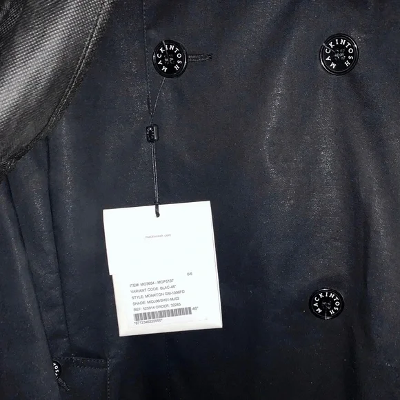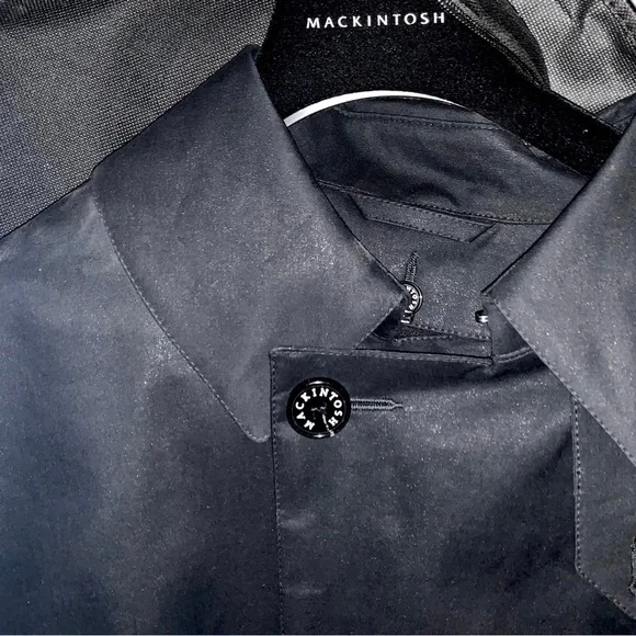 New season F20 - W21MACKINTOSH Monkton O vercoat / RaincoatIT 46Composition: 100% Wool MSRP 1424 USD.Flash in last few photos gives glittery look to textile but that’s just Mackintosh’s proprietary finish on the wool to make it weather/water resistant.It is a solid, non-shimmery black. Using a time-tested manufacturing process developed in the 19th century, Mackintosh is rooted in traditional home-grown craftsmanship that ensures an unequivocal standard of outerwear. Clean lines and sophisticated shapes maintain an enduring modern rainwear aesthetic alongside modern bomber jacket shapesMackintosh Monkton Black Raincoat Overcoat F/W 2020 NWT