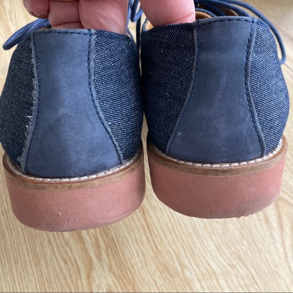 Nice with the denim fabric offset with leather. Pre-loved and in nice condition. That upper leather portion has a small mark or two so zoom in. Shop smart and maximize your shipping $. Peruse my closet of over 1,000 items. Bundle & save!