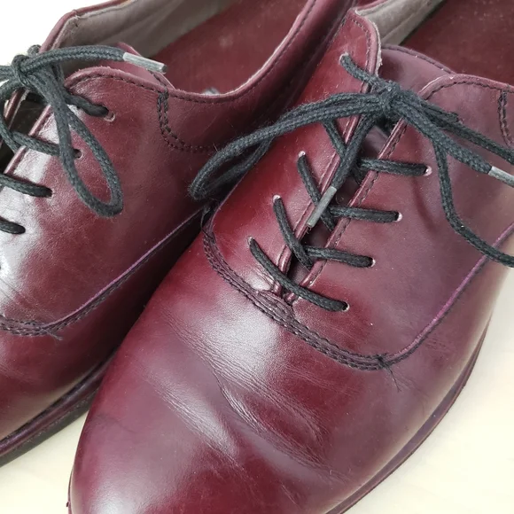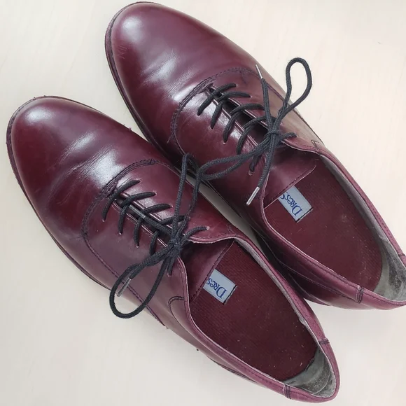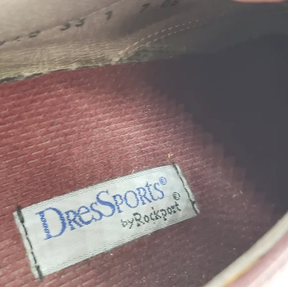 DresSports by Rockport Leather Burgundy Colored Lace-up Oxford ShoesExcellent pre-owned condition. Note: The inside side sole of left shoe has slight discoloration, see photo with finger pointing at it, it´s not noticeable unless you are scouring the shoe for signs of wear.Additionally the laces are thinning and likely will need to be replaced.- Size 7 W- Burgundy Leather Upper- M3627- Black Vibram Sole- Lace up *see Note above- Made in HungaryShips next business day. Offers welcome!