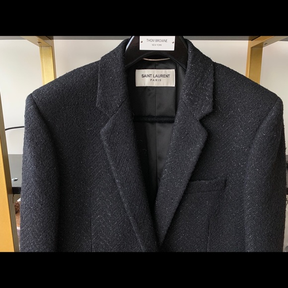 Saint Laurent Black Tweed Wool Coat