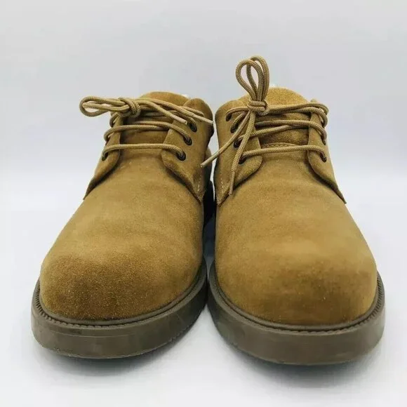 St John´s Bay Shoes Mens Size 10 M Tan Suede Lace Up Leather OrthoLite Comfort are a pair of men´s dress shoes with a solid pattern and round toe shape. They feature a lace-up closure and are made of leather with a rubber outsole. The shoes have a comfortable OrthoLite insole made of foam. They are suitable for all seasons and are available in tan/brown.No Box Included