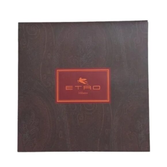 Elevate Your Style with Timeless Italian EleganceTransform your look with this luxurious Etro (Milano, Italy) silk pocket square, a perfect example of classic Italian couture. Two words instantly come to mind: old money. This refined accessory features:Exquisite Design: A paisley print in a rich color palette evoking smoked salmon and caviar.Superior Craftsmanship: Finished with rolled hems and the iconic Etro logo, showcasing the brand´s timeless appeal.Premium Material: Made in Italy from 100% silk, delivering unmatched softness and sheen.Details:Measurements: Approximately 17" x 17"Condition: New with Etro tags, packaging, and an elegant gift envelope – ideal for special occasions or sophisticated gift-giving.From a smoke-free and pet-free environment, this pocket square embodies understated luxury, perfect for those who appreciate fine fashion.Make it yours today – a piece of Italian heritage awaits!