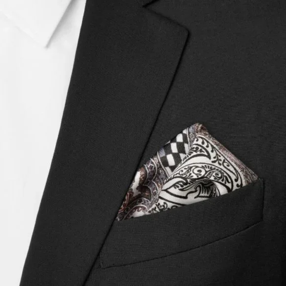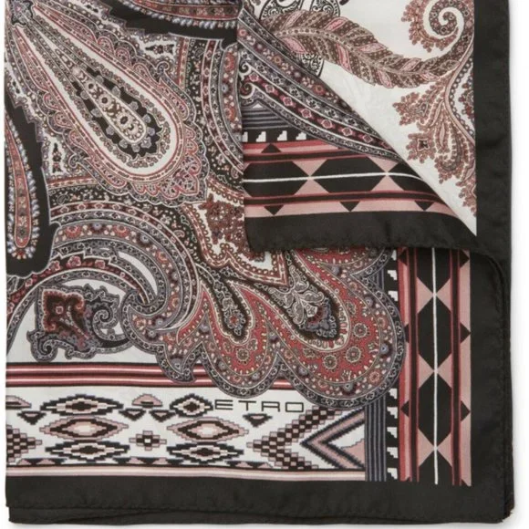 Etro Milano Mens Silk Pocket Square Made in Italy Handkerchief Paisley Black New