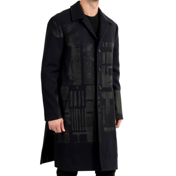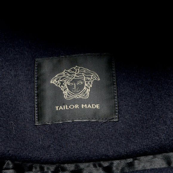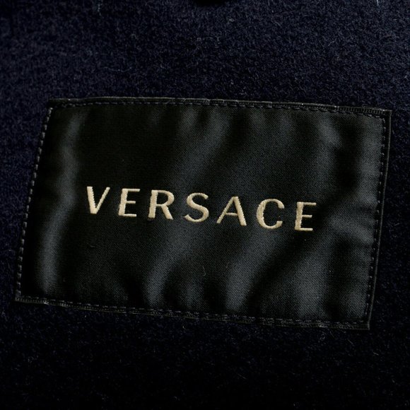 VERSACE MEN´S NAVY BLUE WOOL BUTTON DOWN COAT US M IT 48Condition:New without tagsCountry/Region of Manufacture: ItalyRetail Value: $1950.00This is authentic Versace Men´s Navy Blue Wool Button Down CoatMaterial: Wool / Cashmere SQU: V-WH-16506Chest: 22.5"Sleeves: 26"Shoulders: 19.75"Length: 41.5"