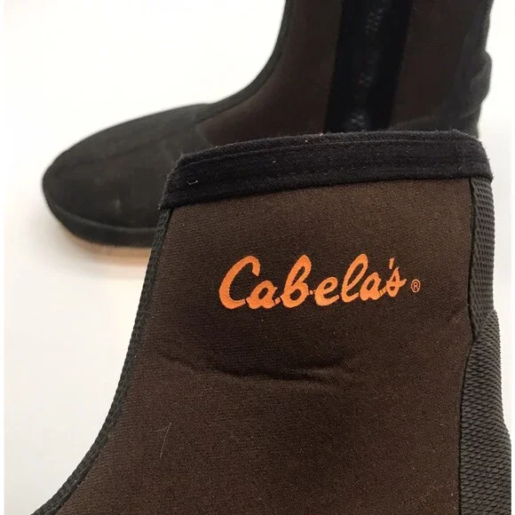 Cabela´s Felt Sole, Zip Up Wading Boots. Men´s size Medium or 8-9, Brown and Black, for Fishing, Rafting, Water Sports, Neoprene Rubber Shoes have 8 inch shaft. Soles measure 11.25 inches long and 4 inches at ball of foot.Wading boots from Cabela´s have zipped neoprene uppers, rubberized tops and sides, and felt sole bottoms to give extra traction on algae-covered rocks. These Boots are designed for wading while fishing, rafting or other water sports. The rubber flange on back might also hold fin straps for use while fishing from a float tube/belly boat.Pre-owned. Please check all photos for condition. I always carefully package and ship out immediately. If you have any questions please reach out.Pair in photos is the exact item you are purchasing.Make sure to follow. I post daily and offer combined or bundle pricing.