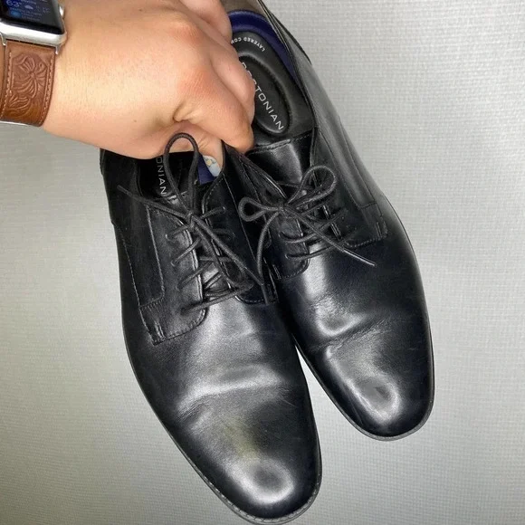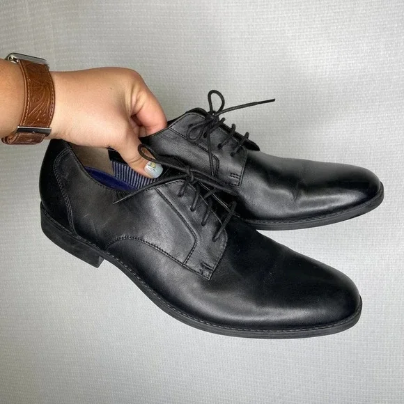 Size 9.5 MensBlack dress shoes tie up Layered comfort foamSB86*First photo has a filter on the photo does not show actual color as truly as other photos*.All bundles come with a free gift!!