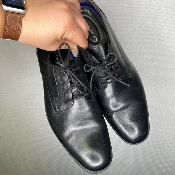 Size 9.5 MensBlack dress shoes tie up Layered comfort foamSB86*First photo has a filter on the photo does not show actual color as truly as other photos*.All bundles come with a...