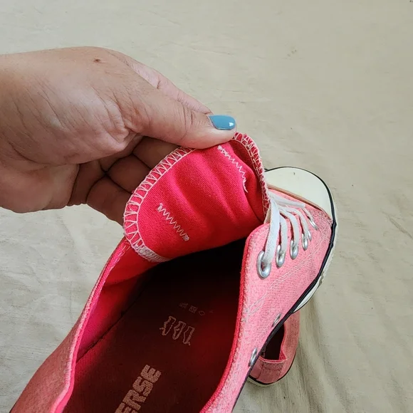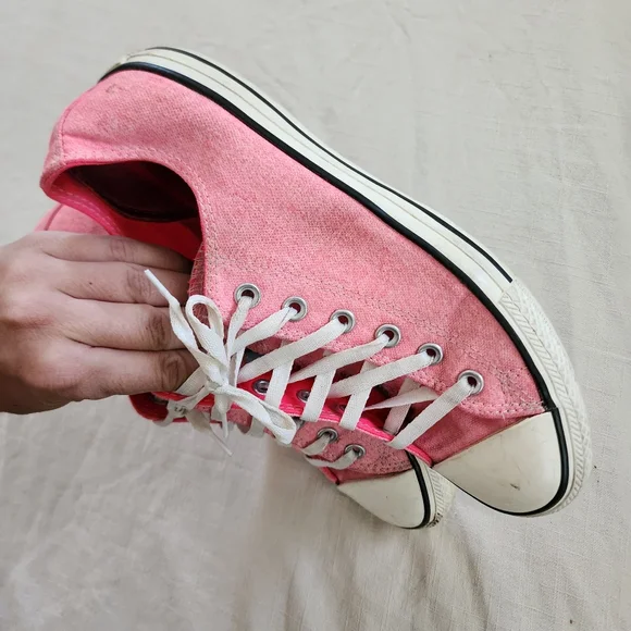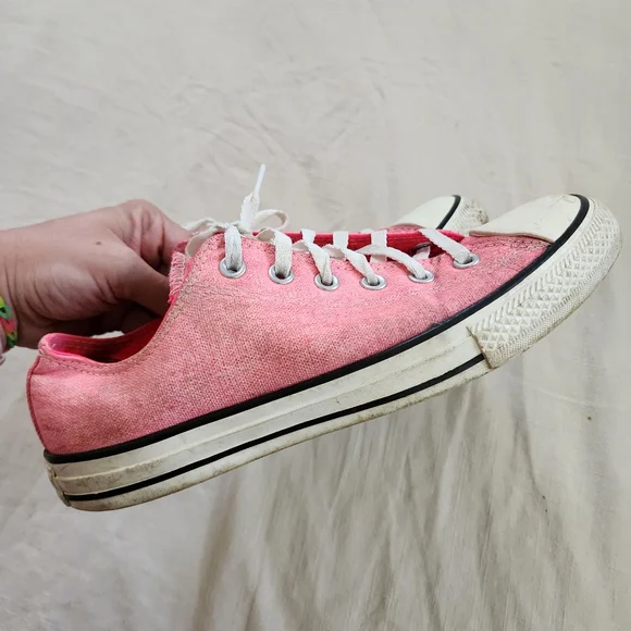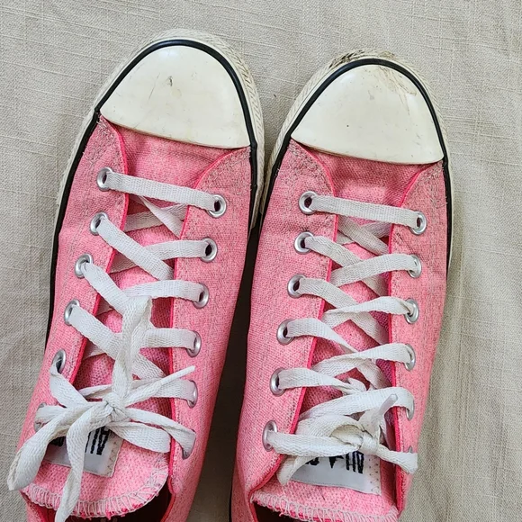 pink converse lowtop allstar shoes!size 8 on bottom, mens 8 - see measurements in picsnote some wear