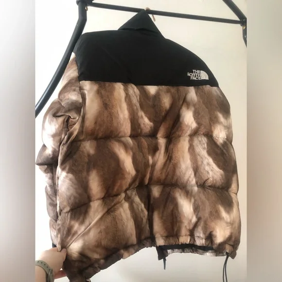 Lightly used North Face X Supreme Fur Print Nuptse Jacket in Brown!Barely worn, I do have a cat but the jacket is kept as away from the cat as I can lol.Price is not firm, I’m willing to haggle!