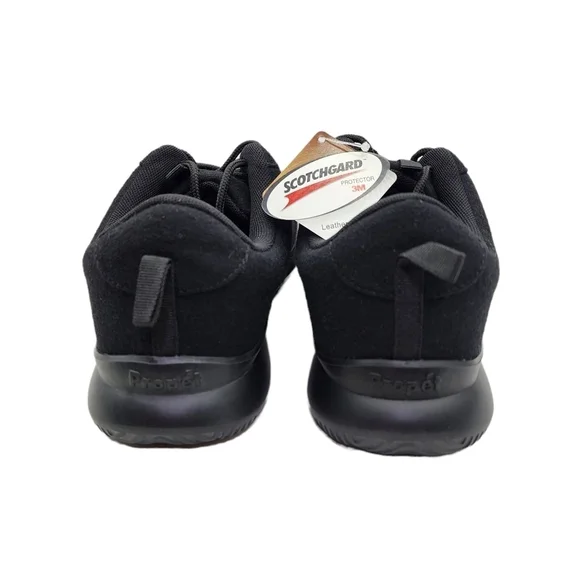 Men´s Vance Lace Up Comfort Sneakers from Propet in Black.Scotchgard Treated Wool Blend Polyester Flannel UpperFirm Heel CounterPadded Collar And Tongue With Mesh Lining Breathable Open Cell InsoleEmbedded EVA Cushioned BoardLightweight Thermally Controlled Rubber OutsoleRemovable Footbed FlexibleNew Without Box. It Has A Minor Flaw. See Photos.Size: 9.5Color: BlackLace-Up Sneaker Shoes for Men.