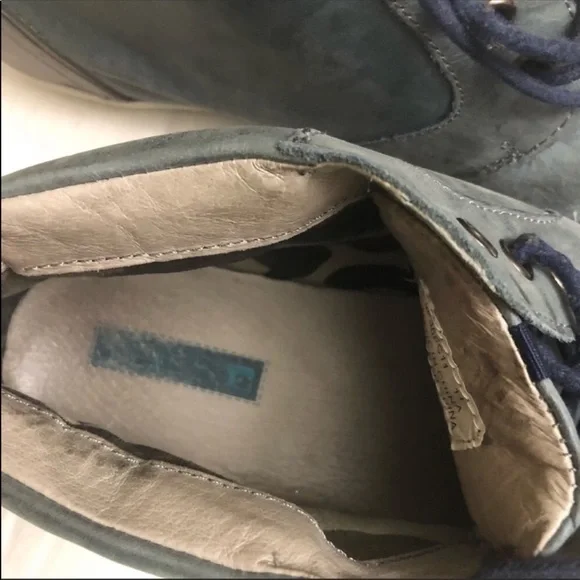 Joe’s Jeans Chadd Hi-Top Leather sneakersSize 11Polished leather upper constructionManmade sole with approx 3.5 inches shaft heightThe color is a grayish-blueIn very good condition *Stockphotos for reference only, not my pictures.