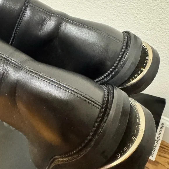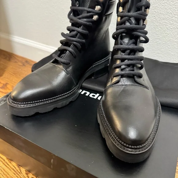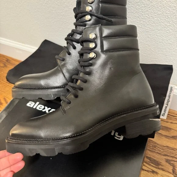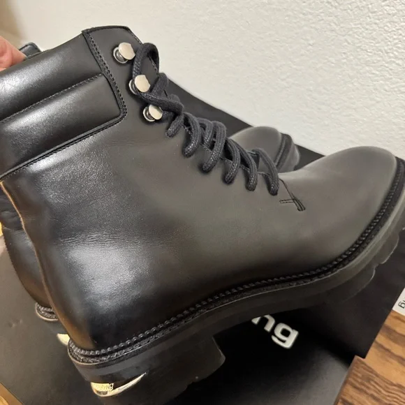 Step out in style with these sleek black lace-up boots. Leather signature Alexander wang Hiker boot in 7.5 new with box and dust bag Authentic taking reasonable offers