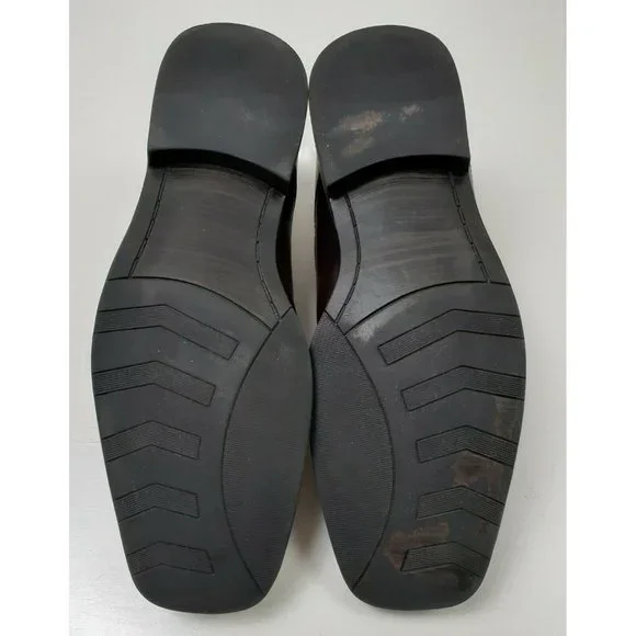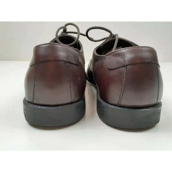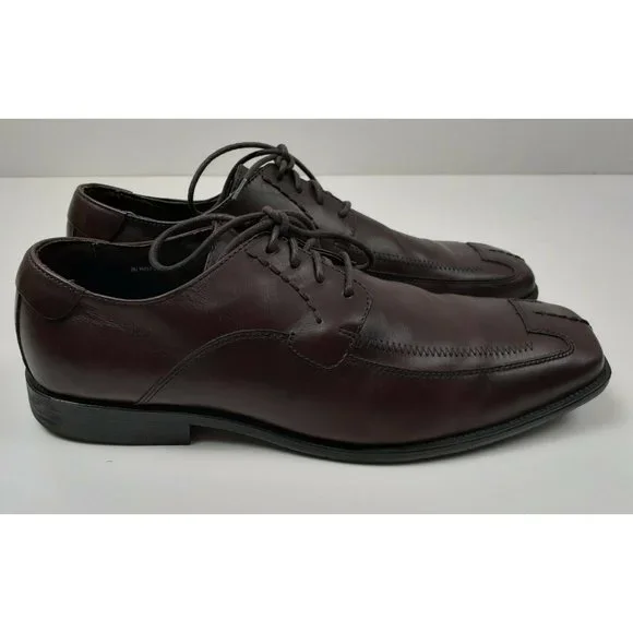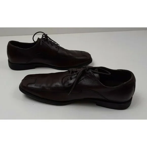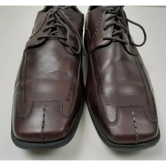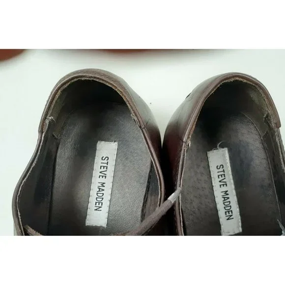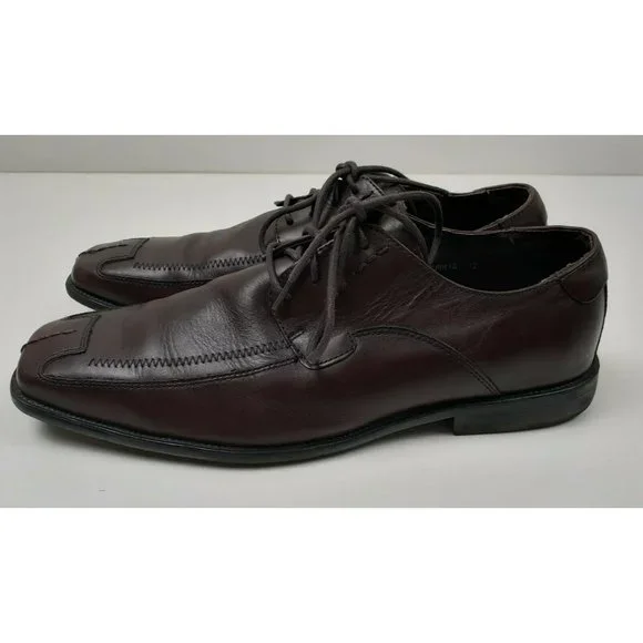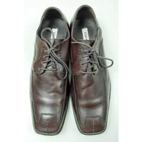 Steve Madden Men´s Burrys Brown Leather Lace-Up Oxford Dress Shoes Square Toe - Size 12Dark Brown - Very Good ConditionSome Scrapes on Right SolePlease see all photos.