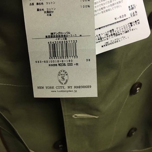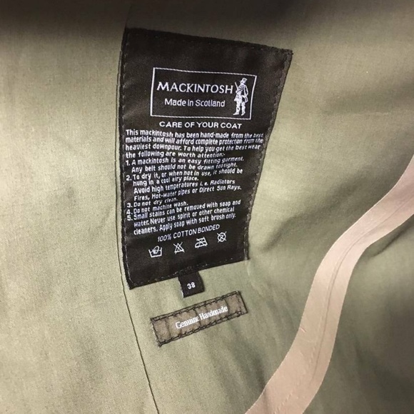 Todd Snyder Mackintosh Dornoch Olive Green Trench Coat Size 38 Retail $2000brand new, never wornThis is a brand-new (with original tags) Mackintosh x Todd Snyder Dornoch belted trenchcoat, size 38 (US).This trench coat (a Todd Snyder Black Label collaboration with Mackintosh) is made out of the bonded cotton that Mackintosh is famous for, which is completely waterproof due to the construction.