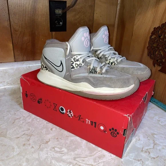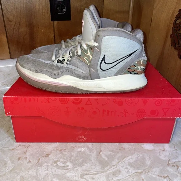 Size 8 - Nike Kyrie Infinity Leopard Camo sneakers gray clean