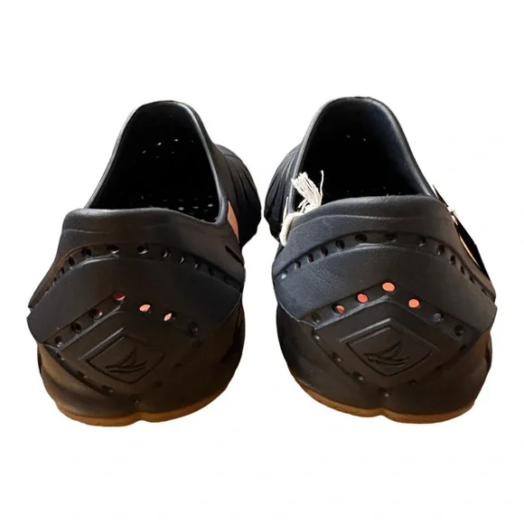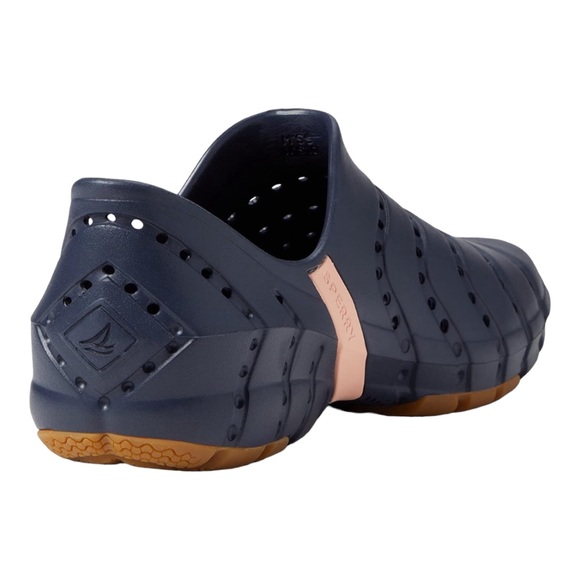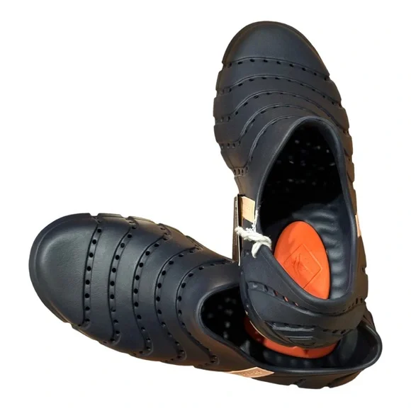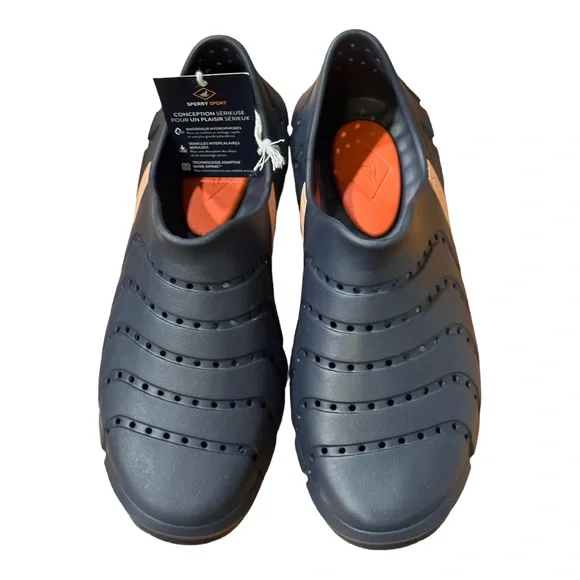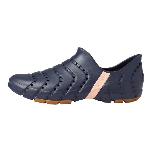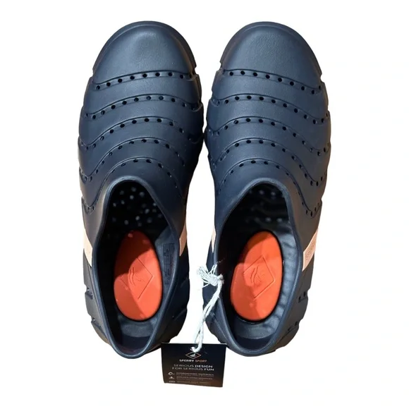 Brand new with tag. Does not come with box.The perfect family-friendly, all-purpose water shoe, featuring a versatile slip-on construction that’s designed to stay securely on the foot through all deck activities. Its tailored size and shape hugs the foot, and its quick-drying hydrophobic materials won’t absorb water. Adaptive Wave Siping™ technology disperses water underfoot to enhance traction on wet or dry surfaces.Quick-drying, injected EVA upperEasy slip-on/off constructionDesigned for drainage and breathabilityLightweight EVA footbed provides cushioning and shock absorptionNon-marking rubber outsole with Adaptive Wave Siping™ technology for enhanced wet/dry traction Take a leap to comfort wearing Sperry® Water Strider footwear for your outdoor ventures.Synthetic contoured upper.Synthetic lining.Cushioned Ortholite® insole.PLUSHWAVE® technology for bounce.Non-marking rubber outsole with Adaptive Wave-Siping™ for the traction on both wet and dry surfaces.Quick-drying performance technology.Slip-on style.Round protection toe.Branding at the shank and outsole.Imported.