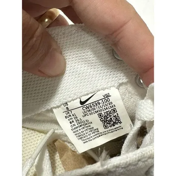 Nike Court Legacy Canvas White Size 8 Sneaker Shoes See Pictures For ConditionThere is some mild yellowing stain shown on pictures. See pictures for details.Cx223