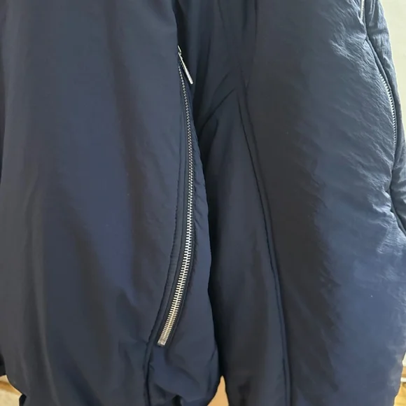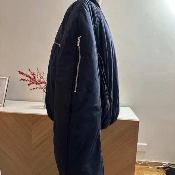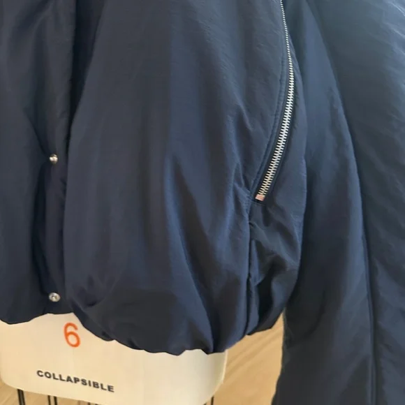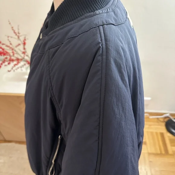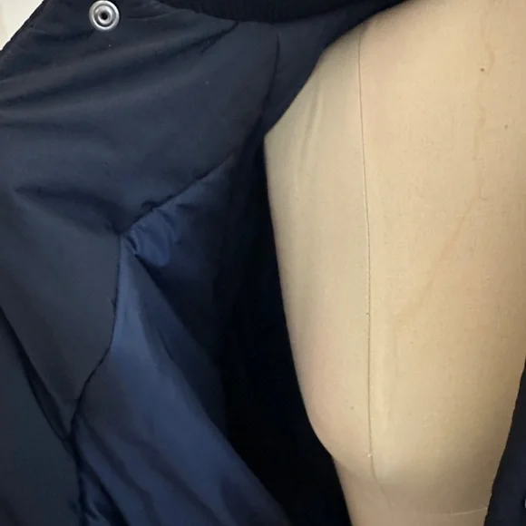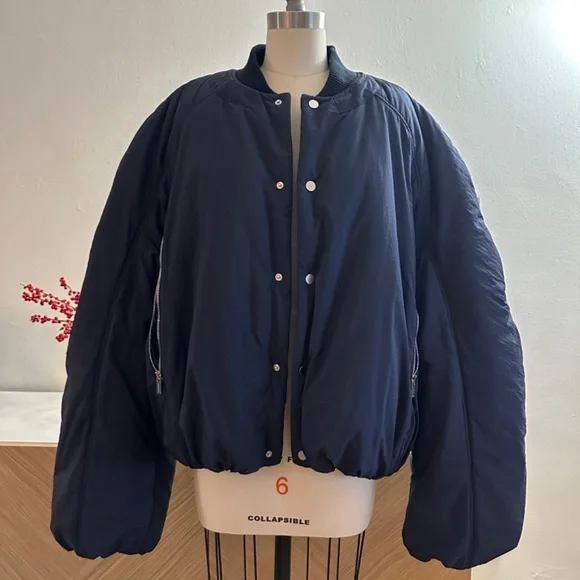 Puffy bomber- Cropped, round fit - Wadded cotton blend- Ribbed bomber collar- Snap buttons- Long zipped pockets on sides, back and sleeves - Elasticated cuffs and hems- Grosgrain...