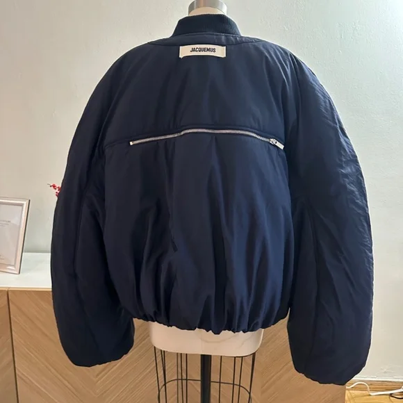 Puffy bomber- Cropped, round fit - Wadded cotton blend- Ribbed bomber collar- Snap buttons- Long zipped pockets on sides, back and sleeves - Elasticated cuffs and hems- Grosgrain logo ribbon on the back- Fully lined