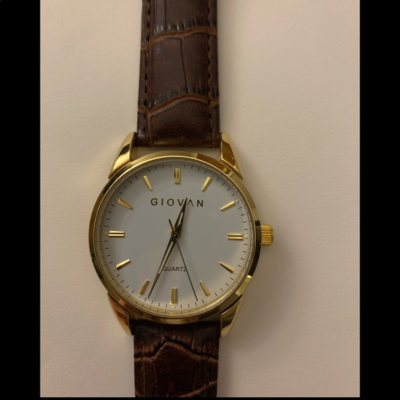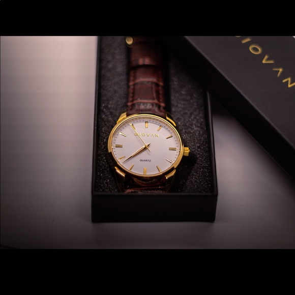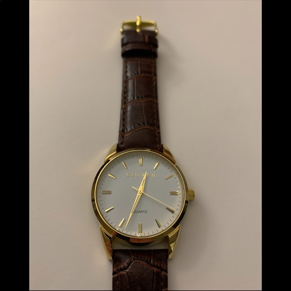 Giovan Men’s Watch White and Gold Face with Brown Leather Strap. New in box, never worn.